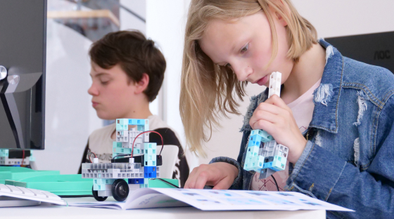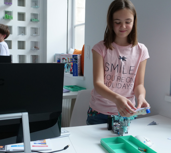 Nous avons développé une méthode d’introduction à la programmation qui mêle construction robotique et code à partir de langages adaptés à l’âge de l’enfant (Scratch, Python, C+, etc.). L’idée ? Permettre à l’enfant d’aller plus loin qu’en codant à partir d’un jeu vidéo afin qu’il se rende compte concrètement de ce que permettent les lignes de code en animant ses robots.